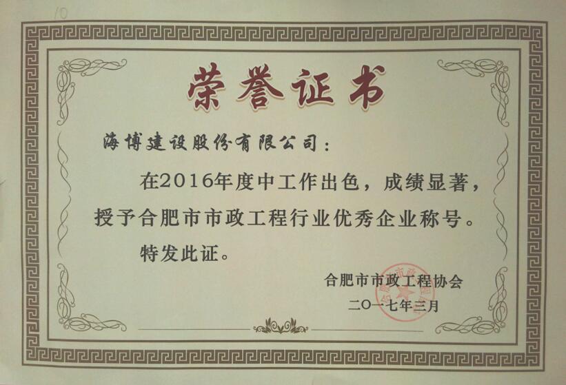 在一年一度的合肥市建筑業優秀企業評選中,我單位經過市建委、市建筑工程協會的層層評比,最終獲得合肥市建筑業2016年度“優秀施工總承包企業”及“優秀監理企業”雙項榮譽...