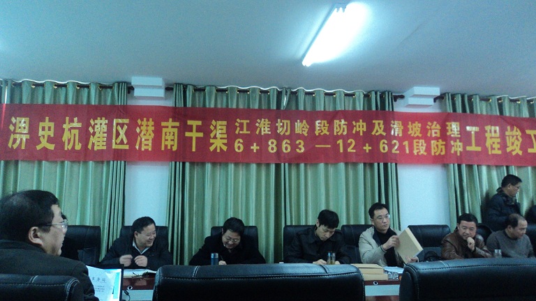 2013年12月17日,淠史杭灌區潛南干渠(6+863~12+621)段防沖、江淮切嶺段防沖及滑坡治理工程竣工驗收會議在潛南分局磨墩管理所召開。合肥市水務局、合肥市財政局、合肥市水利工程質量監督站、安徽省淠史杭灌區續建與節水改造工程建設管理局、肥西縣財政局、肥西縣水務局、 潛南分局以及勘探、設計、監理、施工單位參加會議。驗收委員會在通過查看工程建設現場情況、 觀看影像資料, 聽取建設、勘測、 設計、 施工、 監理等單位情況匯報后認為,淠史杭灌區潛南干渠(6+863~12+621)段渠道防沖工程已按批準的建設內容全部完成, 工程資料齊全,同意通過竣工驗收。