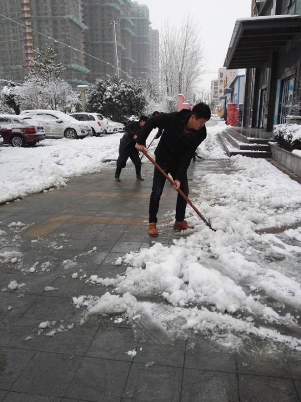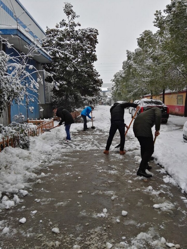 1月3日下午,合肥飄起了2018年的第一場雪,4日早晨積雪達5厘米,時至下午暴雪天氣愈演愈烈,傍晚時分積雪更是達到10厘米之厚。合肥各路段因積雪導致通行困難,事故不斷,集團公司周圍也被厚厚的積雪包圍,為保障聯海同仁及來訪人員的的安全出行,公司物業部及時組織人員開展清雪開路、鋪設地毯、溫馨提示、有序引導等一系列保障措施。
