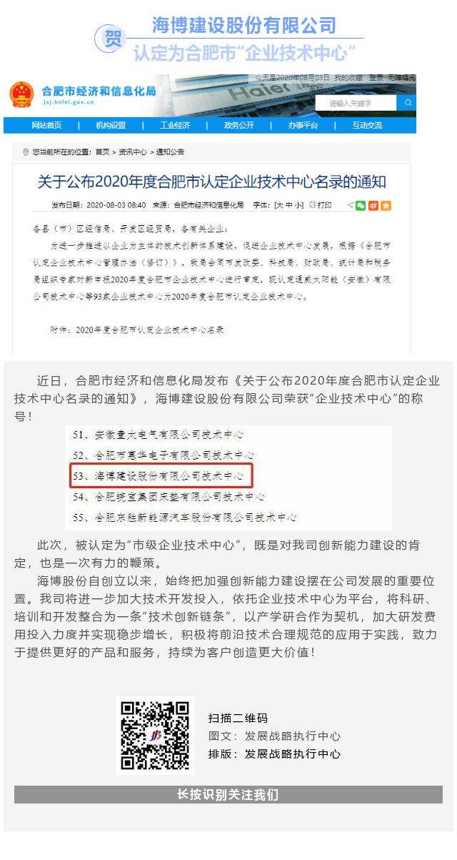 賀海博股份獲“企業(yè)技術(shù)中心”認定